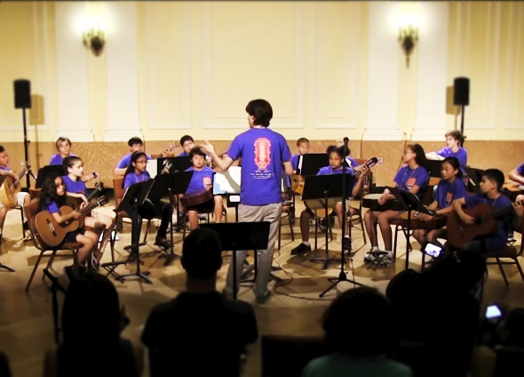Budding young artists ages 6–12 are welcome in Level I of Young Guitarists Workshop. Over the course of the week, students will be exposed to level-appropriate group classes, masterclasses with distinguished faculty, music appreciation, fun workshops, and of course snack, lunch and a fun time.